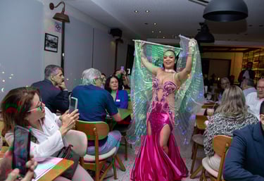Rayzel El Shadday da vida a nossa mascote Jennifer, a gênia da lâmpada. A dança do ventre promove uma experiência de empoderamento feminino por meio da magia artística e interações exclusivas.