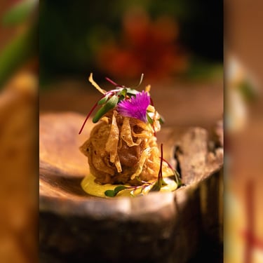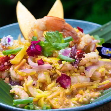 ✦ Entrada: Bolinhos Bali (R$ 33,90) 4 camarões crocantes com recheio cremoso e aromático, inspirados no street food da Indonésia com toque de sofisticação.